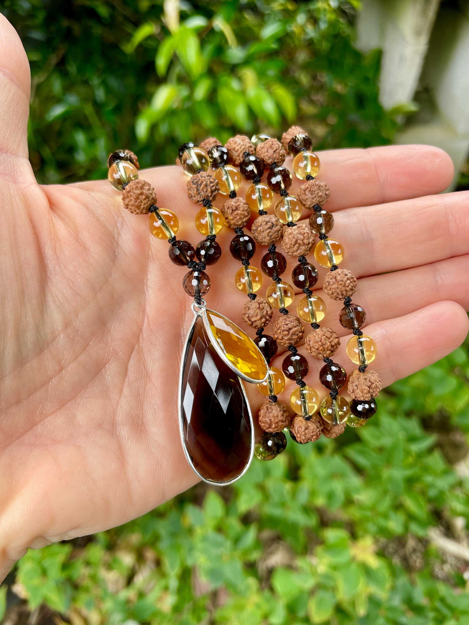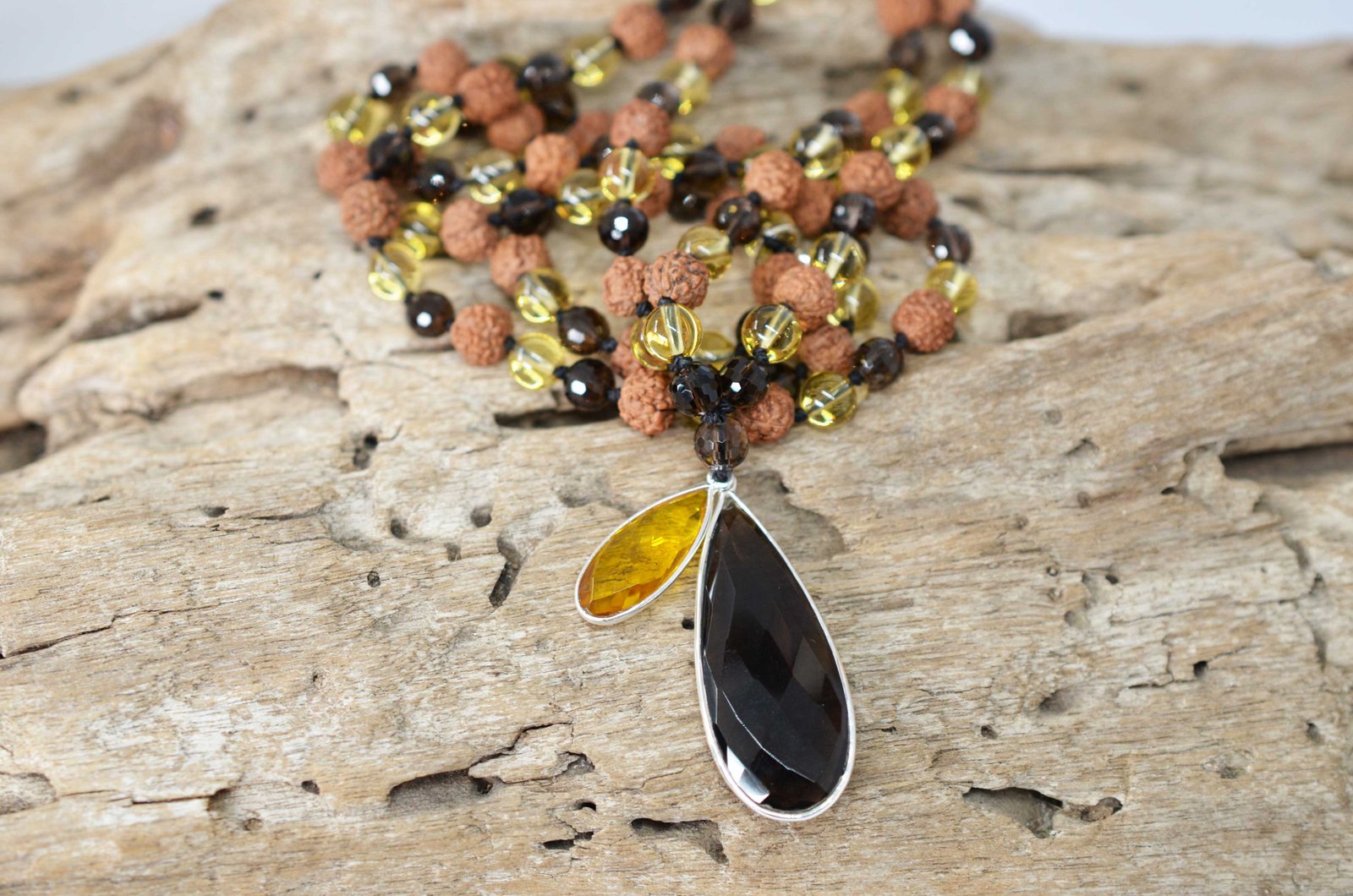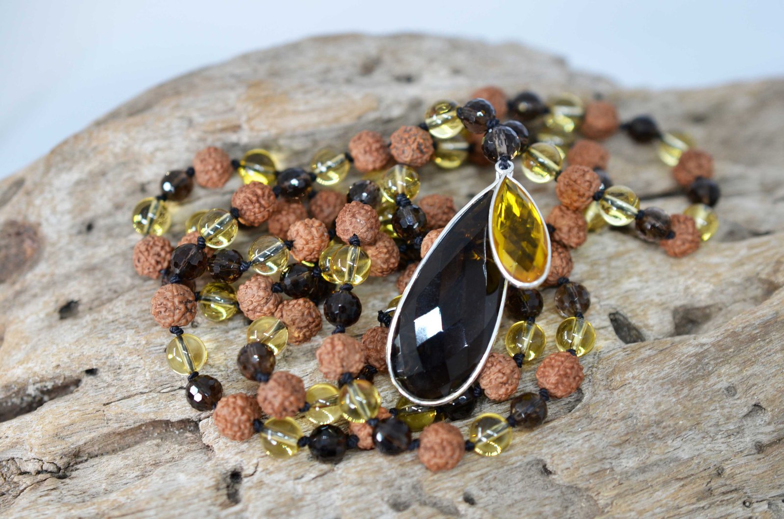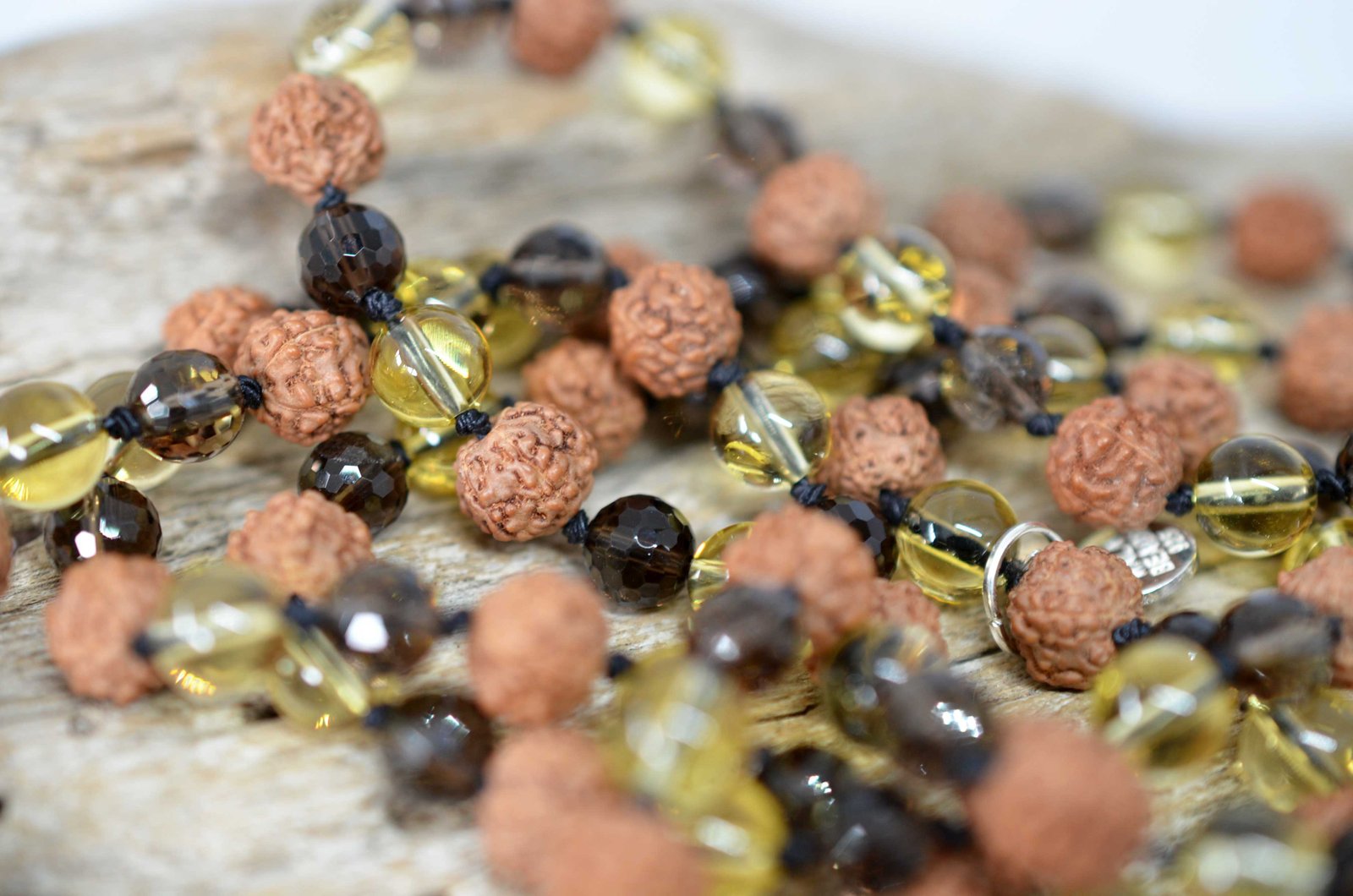 Sacred Rudraksha beads, meaning ‘eye of Shiva’ or ‘tears of Shiva’ in Sanskrit, have been worn by Sages and Yogis since Vedic times for their profound spiritual significance and powerful healing properties. According to ancient Vedic texts, these beads are endowed with cosmic powers to elevate the soul and assist on the path of ascension. It is believed that the Rudraksha contains the secrets of the entire evolution of the cosmos within it. They are known to increase clarity and general awareness, calm the central nervous system, help quiet the mind, free negative thought, increase immunity, energy and stamina while providing rejuvenating qualities..