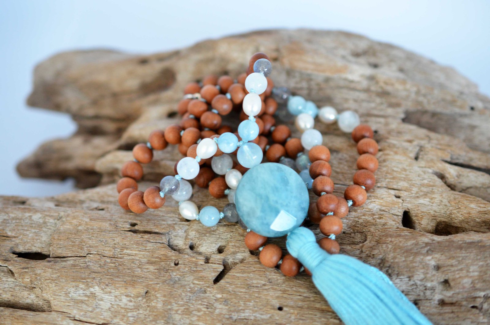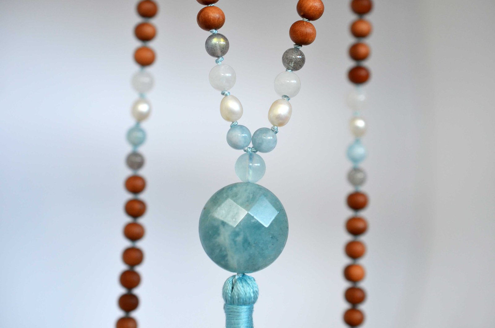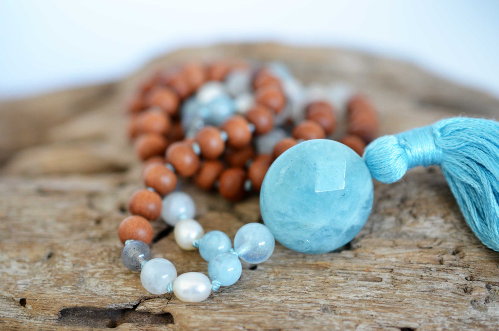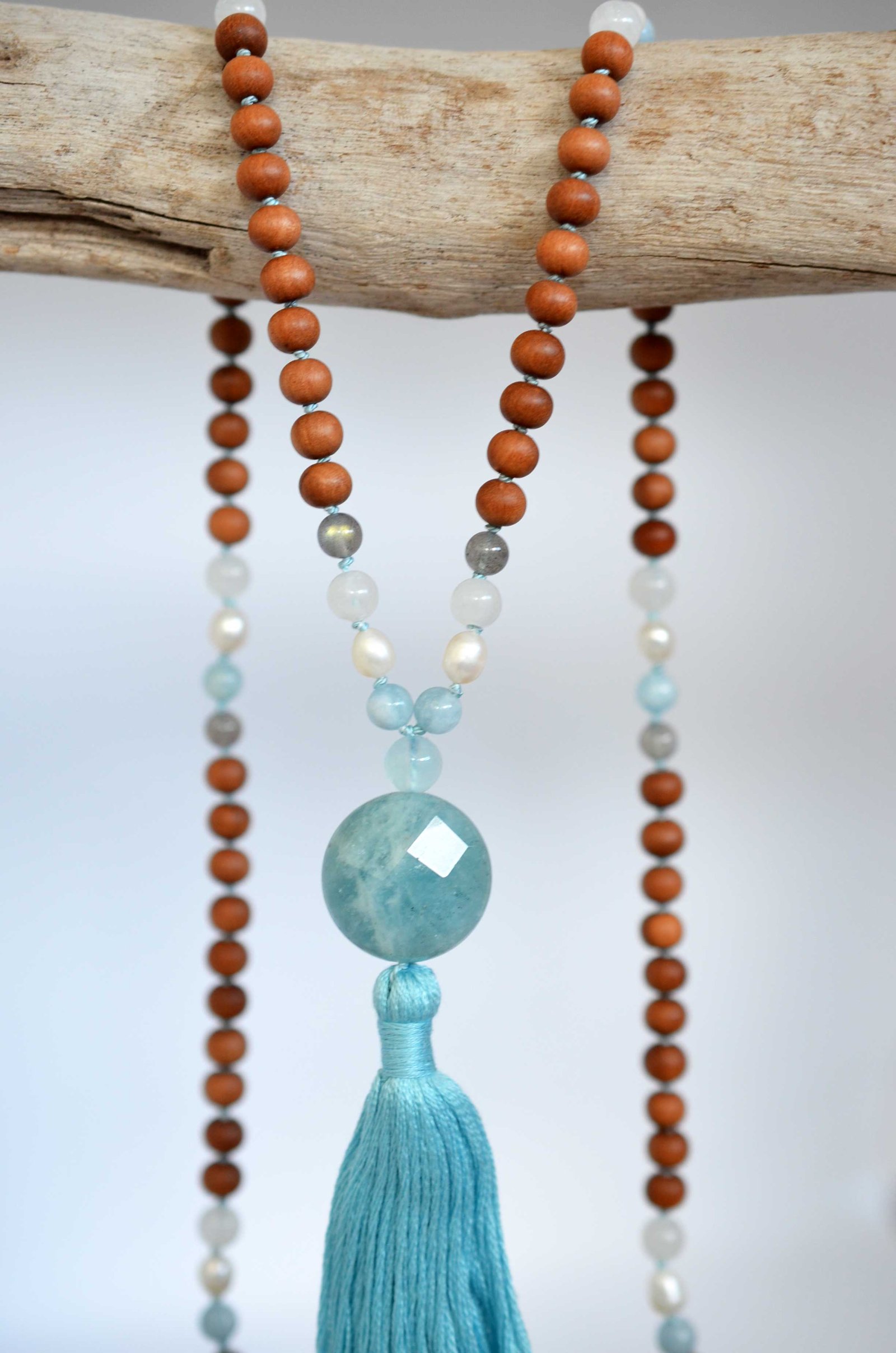 AQUAMARINE (SANDALWOOD) MALA ॐ is made using these crystals: