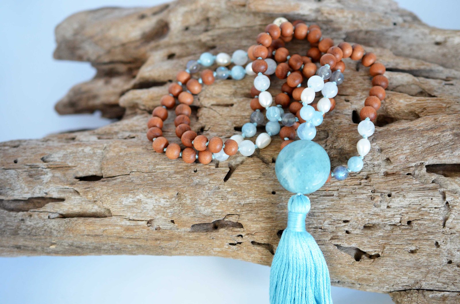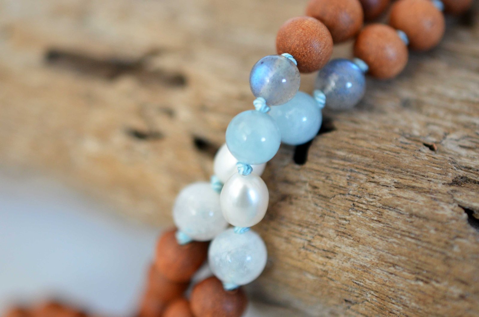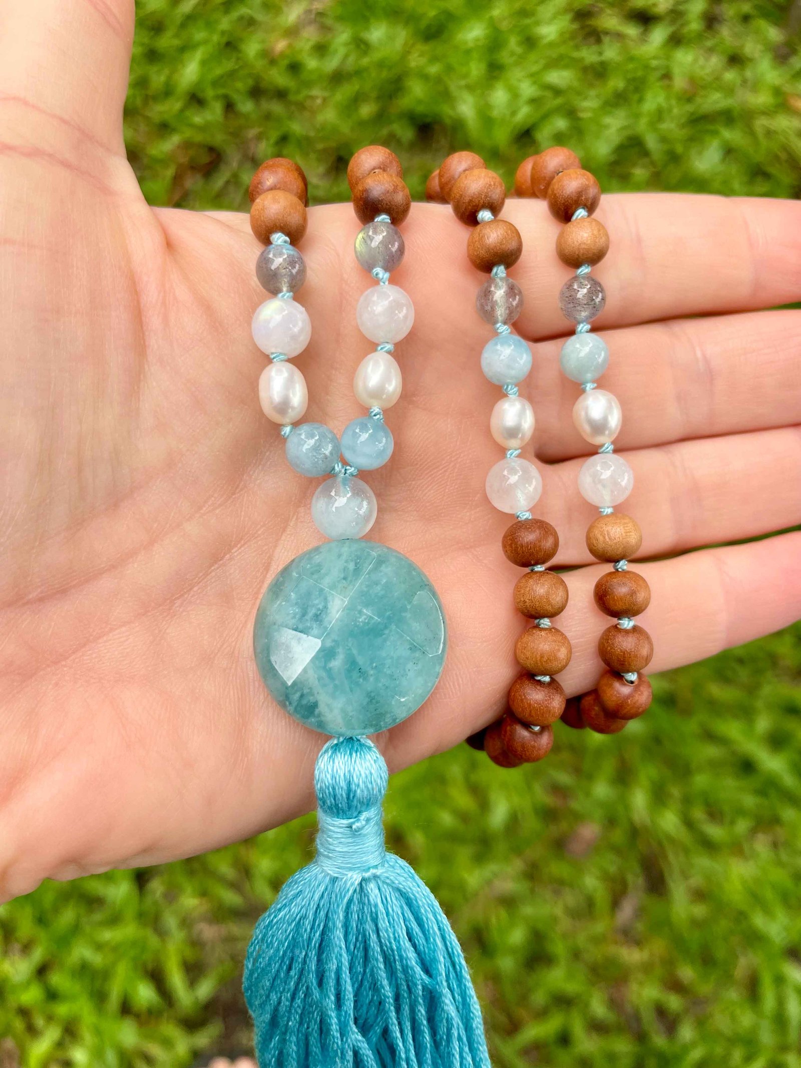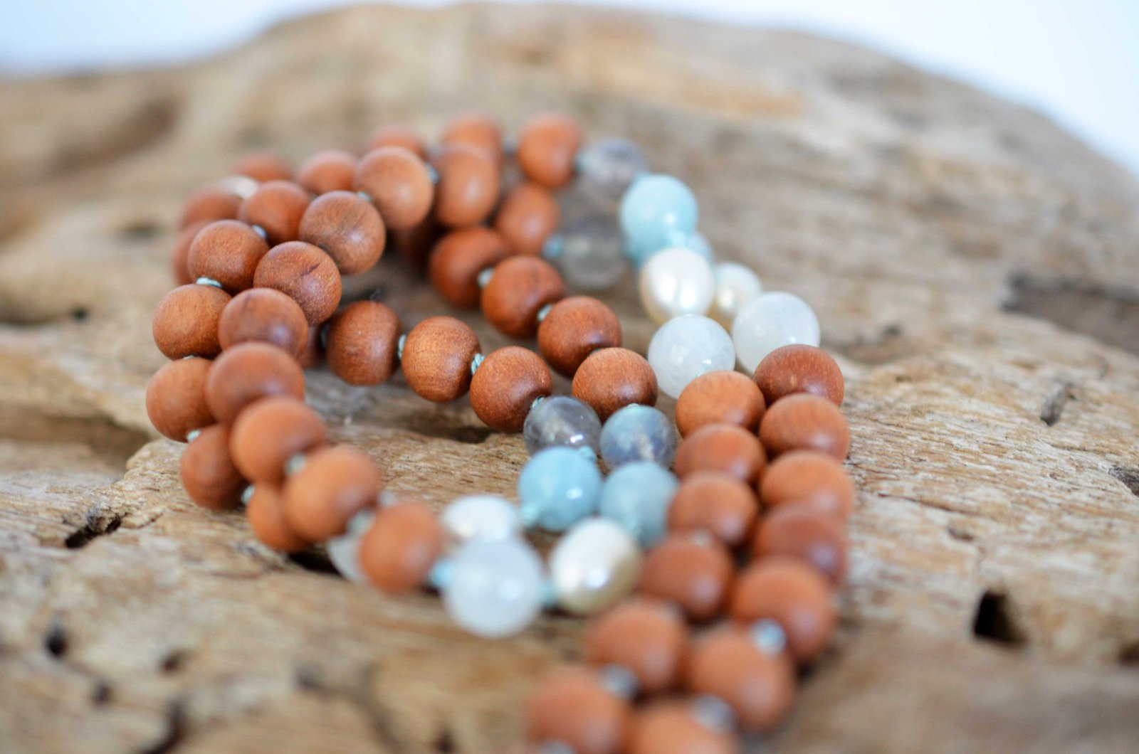 AQUAMARINE (SANDALWOOD) MALA ॐ is made using these crystals:
