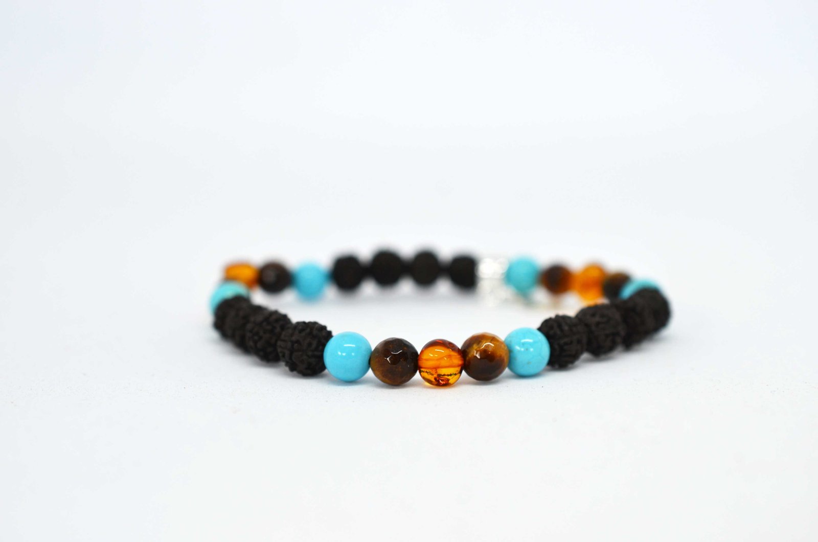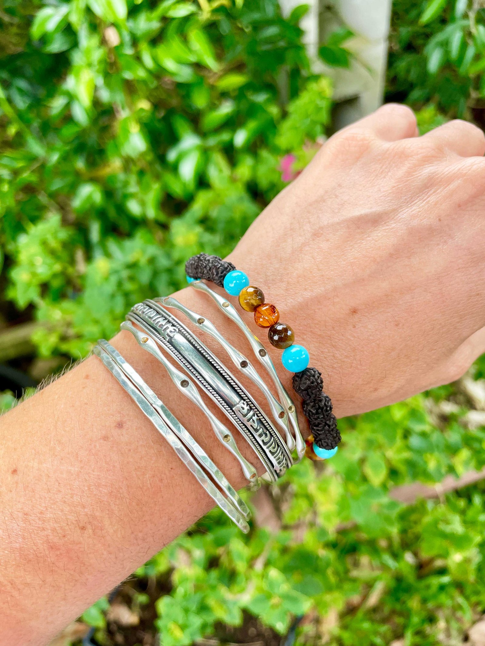 Bracelets are strung on an elastic stretchy cord and come with a sterling silver ॐ charm. The colours may vary due to different monitor settings.