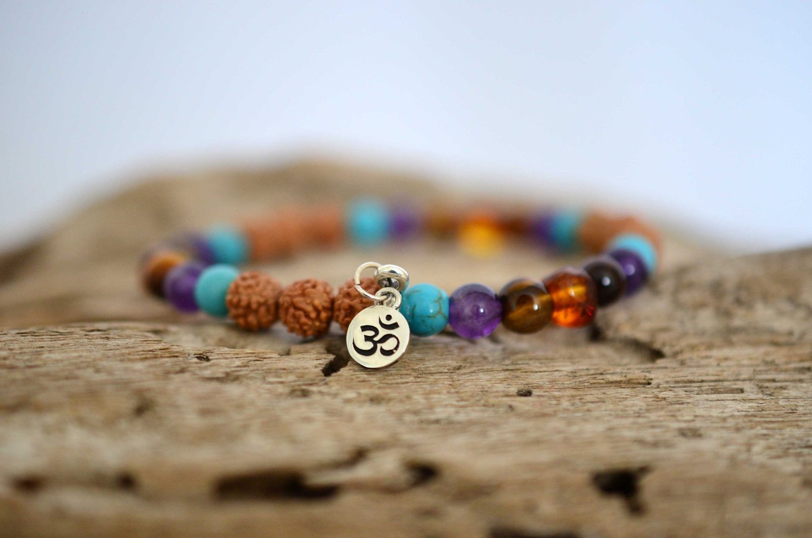 Bracelets are strung on an elastic stretchy cord and come with a sterling silver ॐ charm. The colours may vary due to different monitor settings.