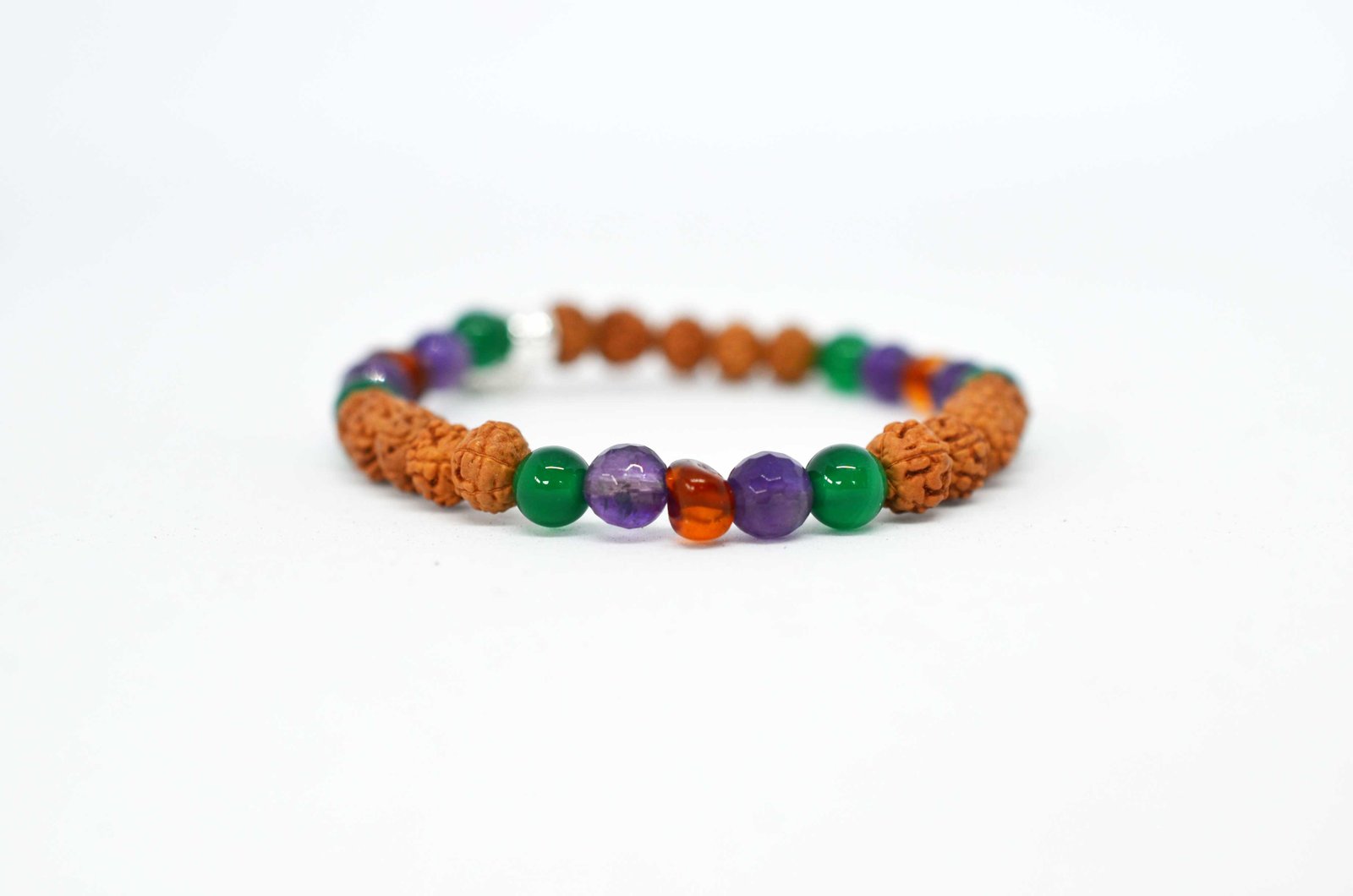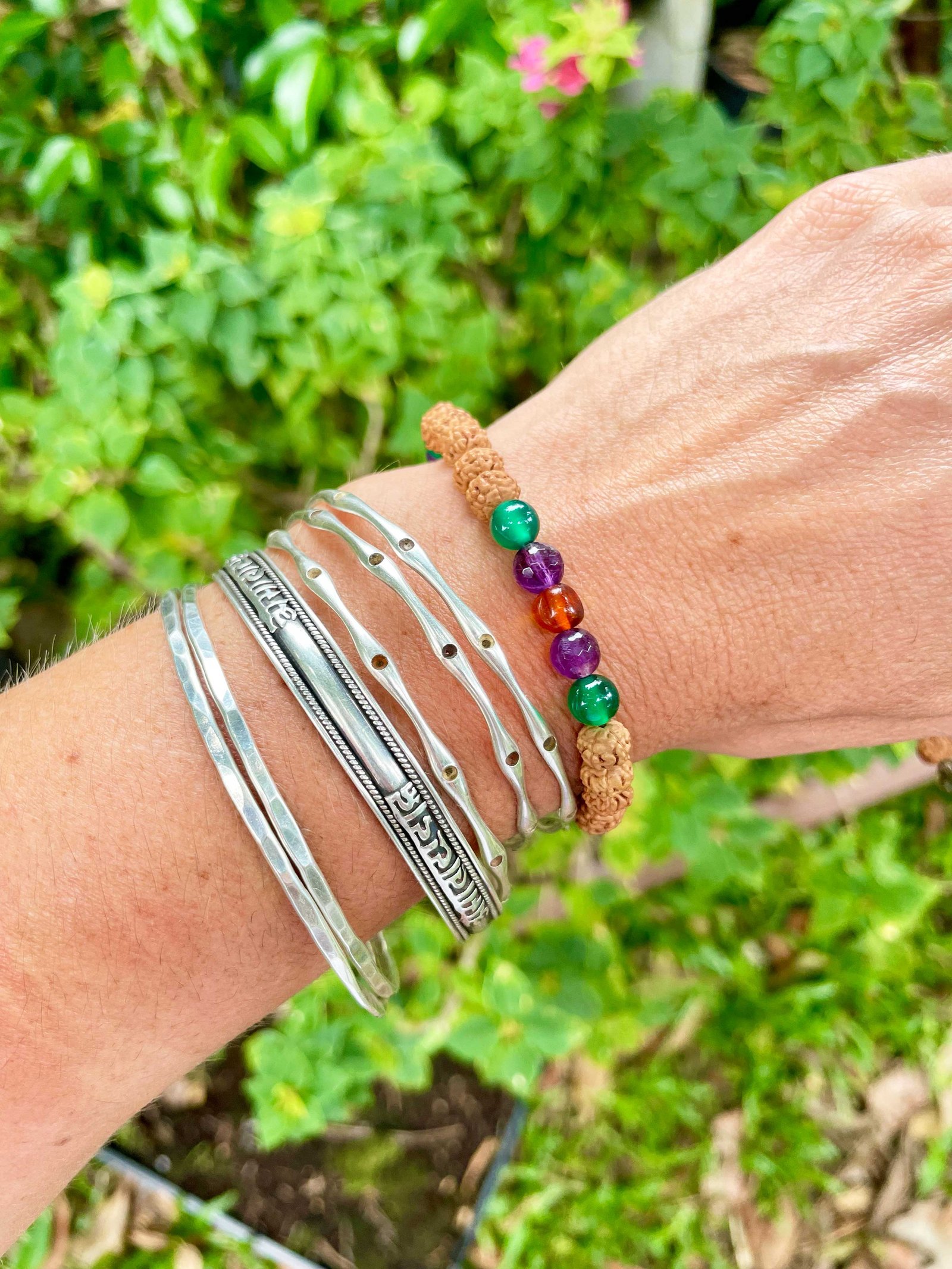 Bracelets are strung on an elastic stretchy cord and come with a sterling silver ॐ charm. The colours may vary due to different monitor settings.